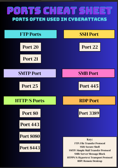 Ports Cheat Sheet Poster 17 Nov Written By Dan Qutaishat This poster has the basics on ports and what the most important ports are used for. Download the Poster Dan Qutaishat https://www.danqutaishat.com